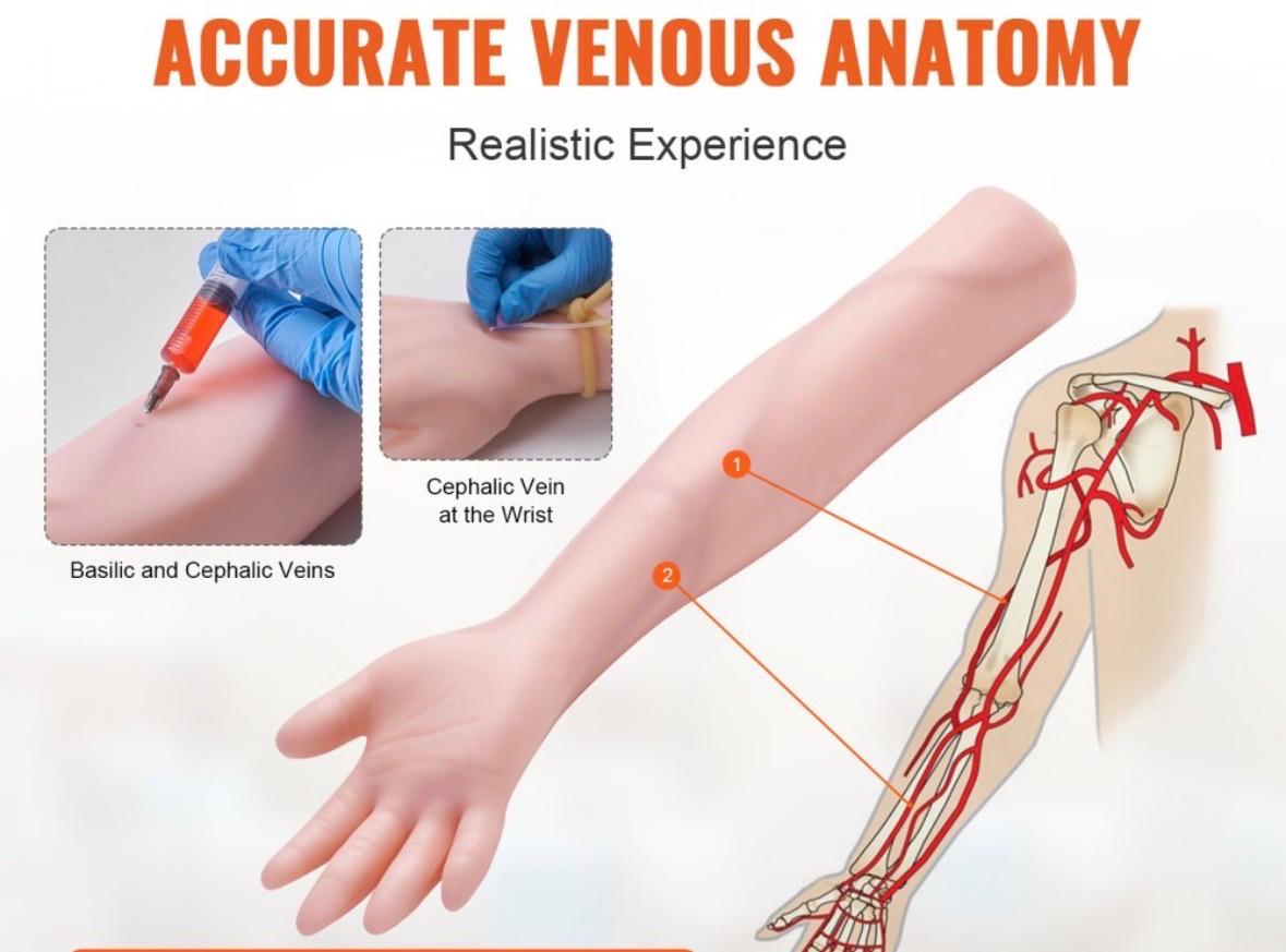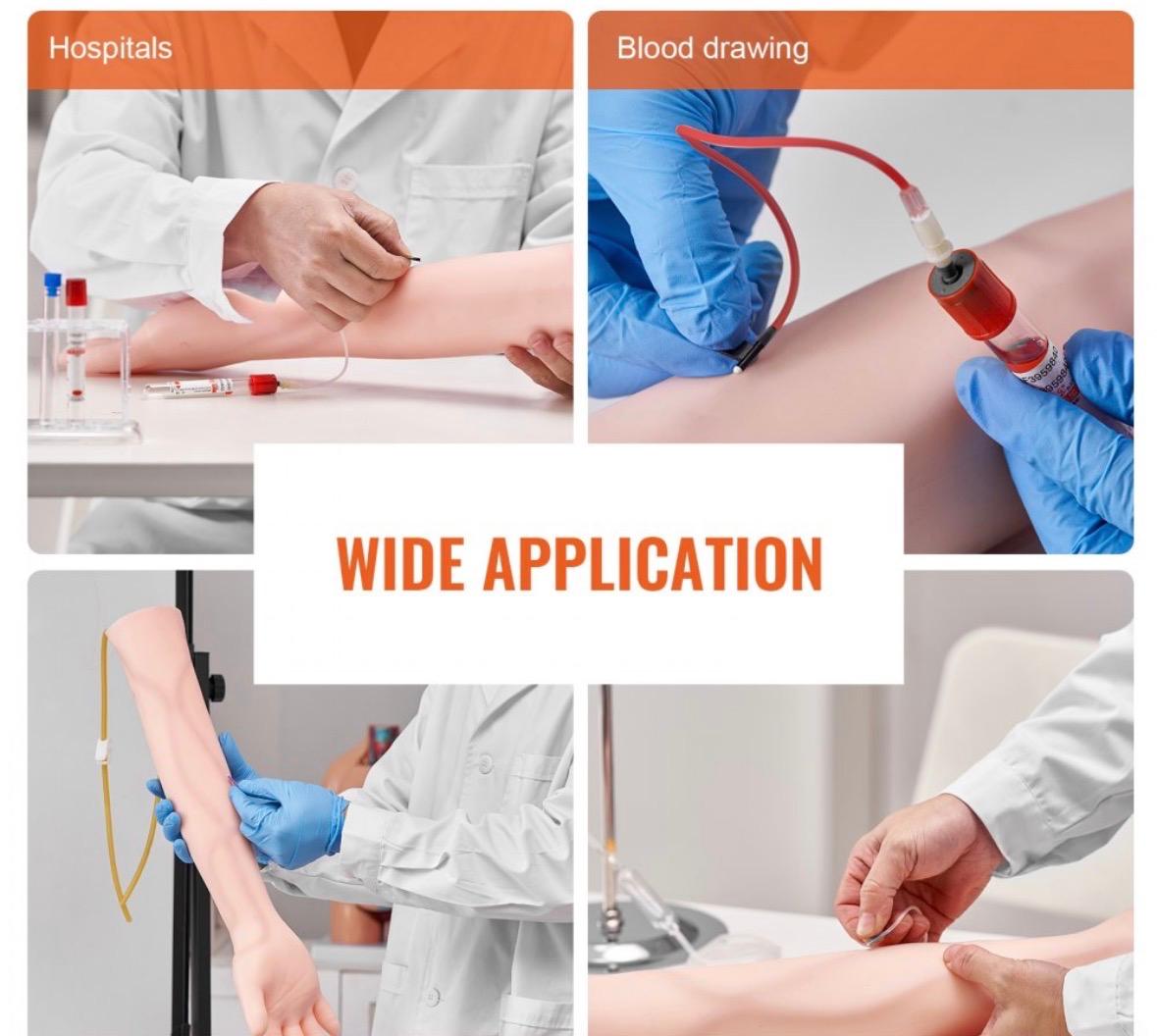 Acest kit de instruire medicală este conceput pentru exersarea și demonstrarea tehnicilor de montare a branulei, recoltare de sânge și administrare injecțiilor intravenoase. Este ideal pentru elevi la școlile postliceale sanitare, studenți la asistențǎ medicalǎ medicinǎ sau cadrele medicale în activitate care vor sa exerseze tehnicile sanitare, precum și pentru centre de training.
